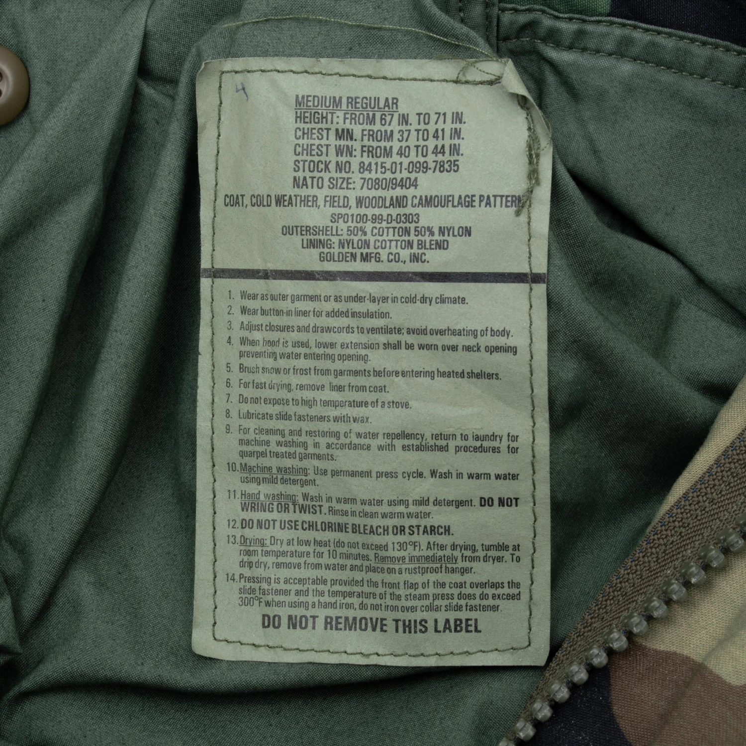 Vintage Us Army M65 Woodland Camo Field Jacket 1999 Size Medium Regular