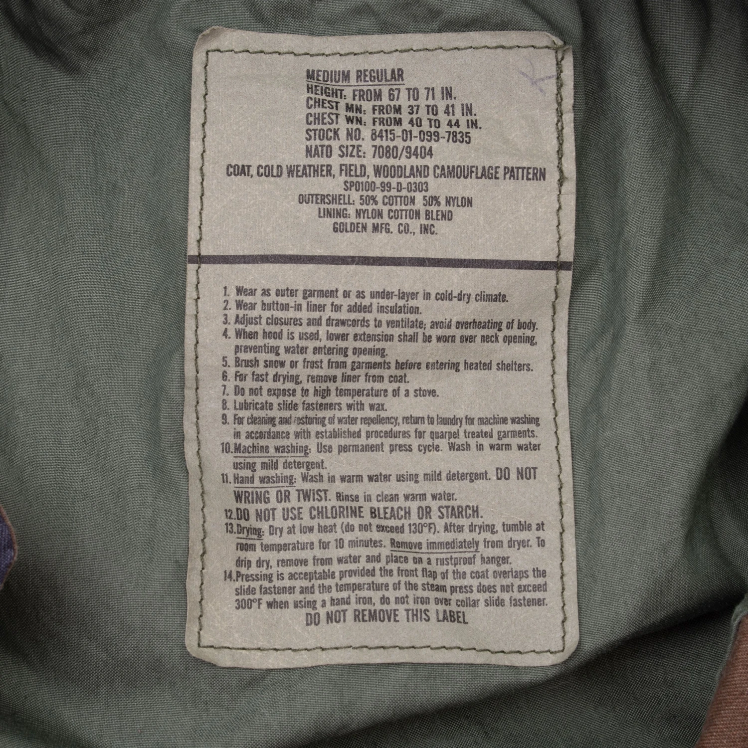STOCK NO. 8415-01-099-7835