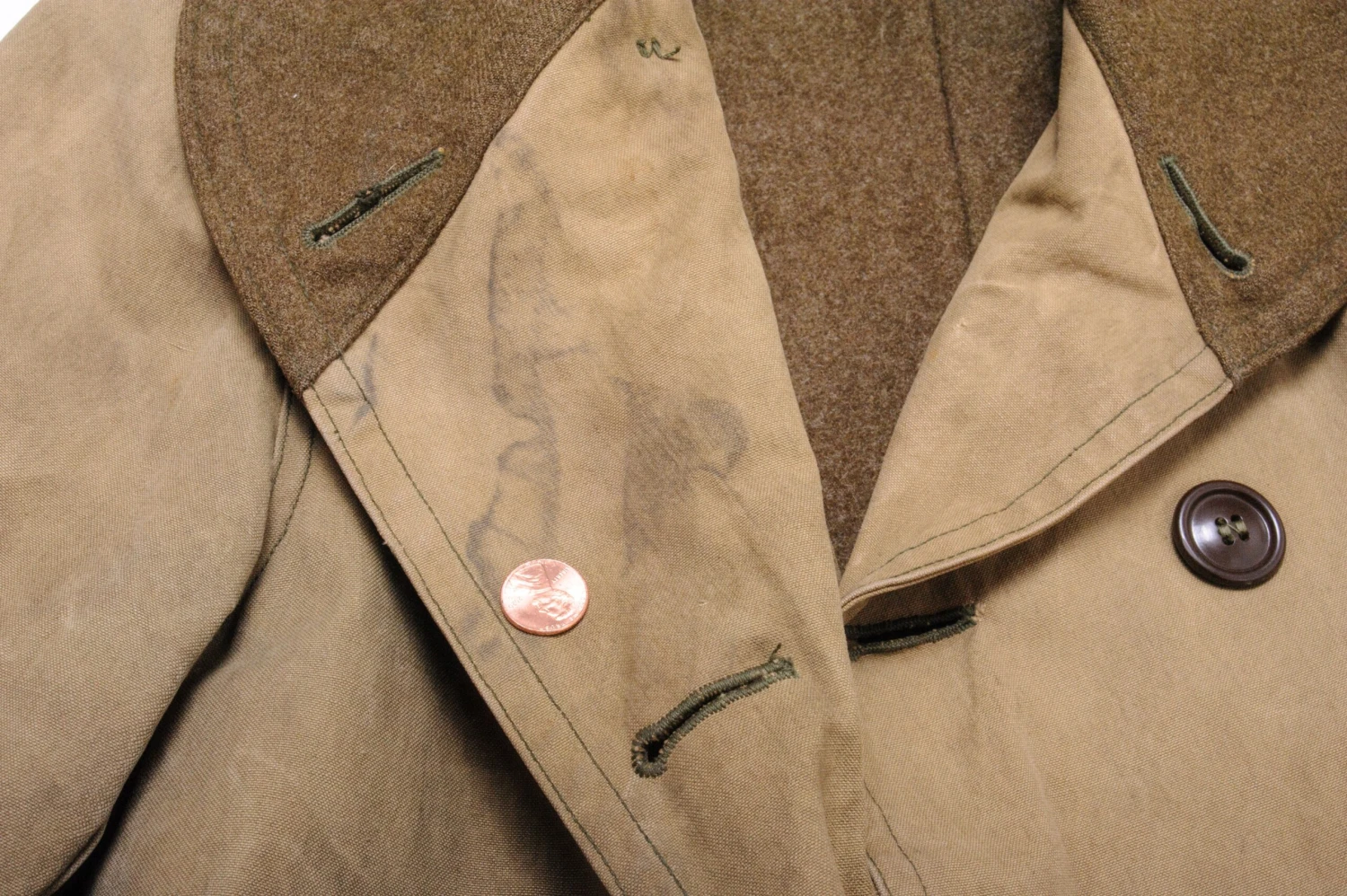 First Pattern with OD wool facing to the collar ( dated 1938 pattern), made from cotton duck.