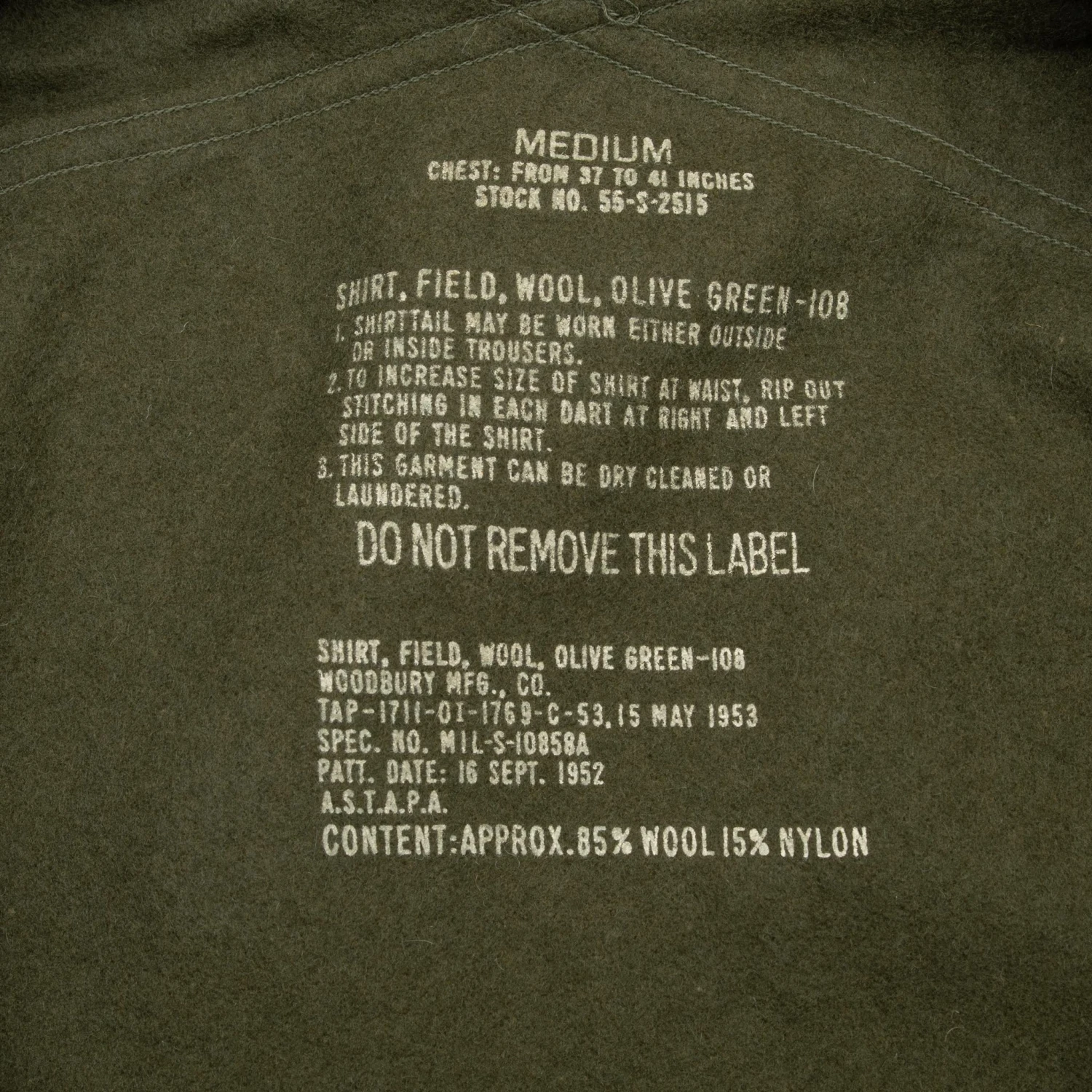 VINTAGE US ARMY OG 108 WOOL SHIRT 1953 KOREAN WAR SIZE MEDIUM NOS(Vintage Us Army Og 108 Wool Shirt 1953 Korean War Size Medium)