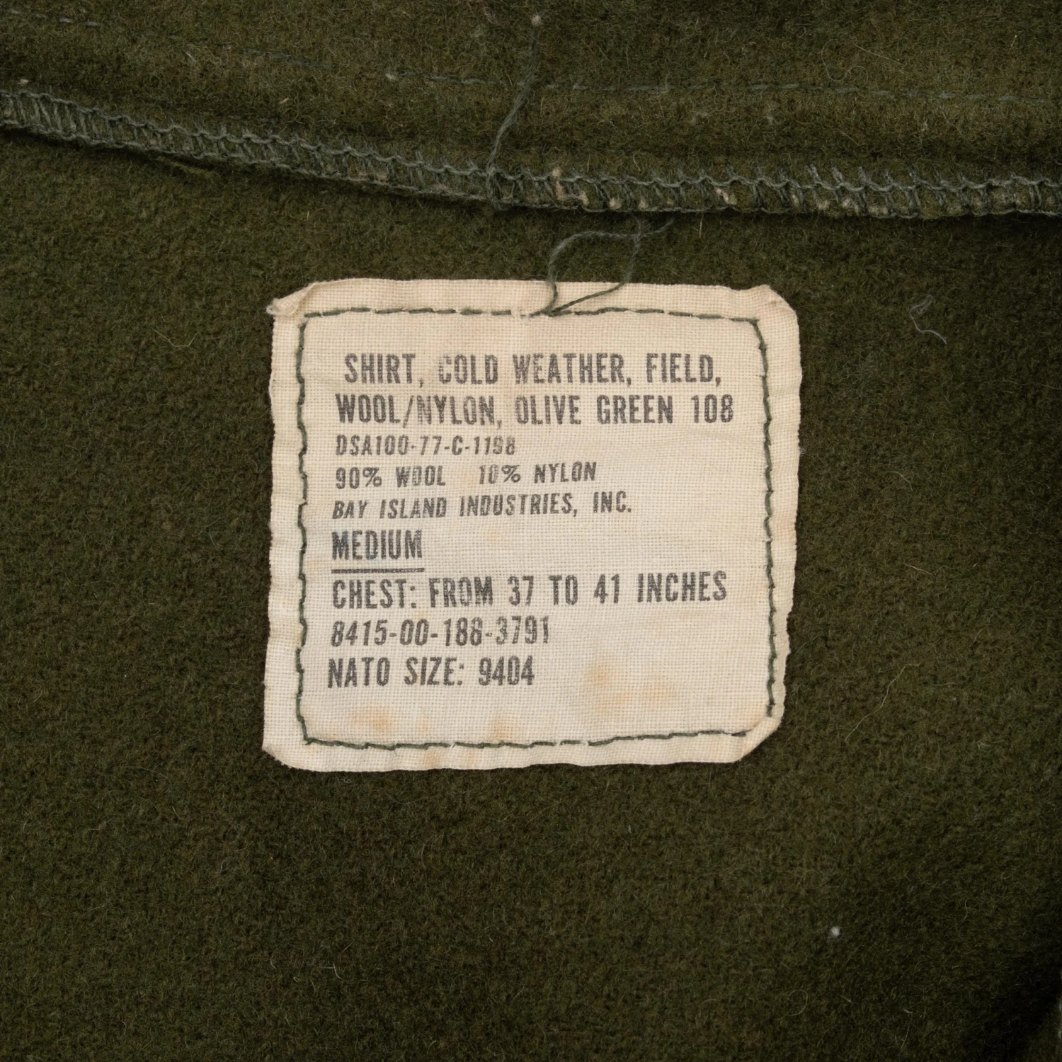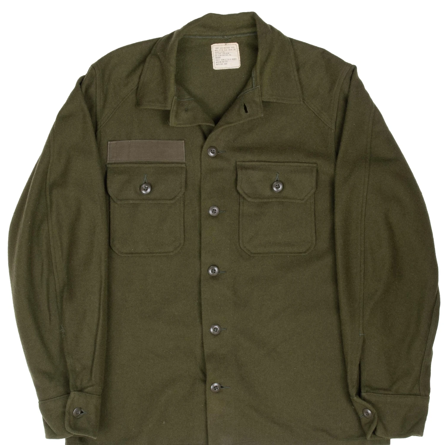 VINTAGE US ARMY OG 108 WOOL SHIRT PATCHED 1977 SIZE MEDIUM NOS(Vintage Us Army Og 108 Wool Shirt Patched 1977 Size Medium Nos)