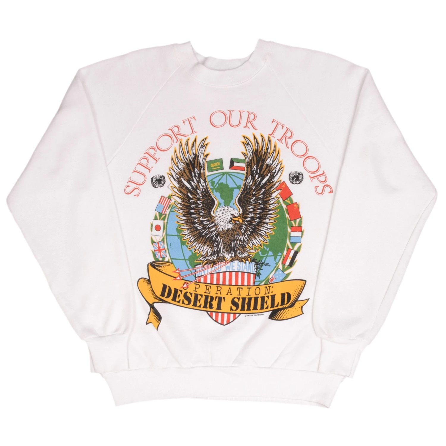 VINTAGE US ARMY OPERATION DESERT SHIELD SWEATSHIRT 1991 SIZE LARGE MADE IN USA(Vintage Us Army Operation Desert Shield Sweatshirt 1991 Size Large Made In Usa)