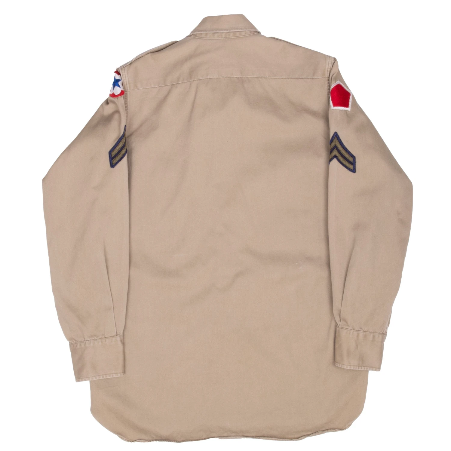 Vintage Us Army Patched Khaki Shirt Post Ww2 Size Medium