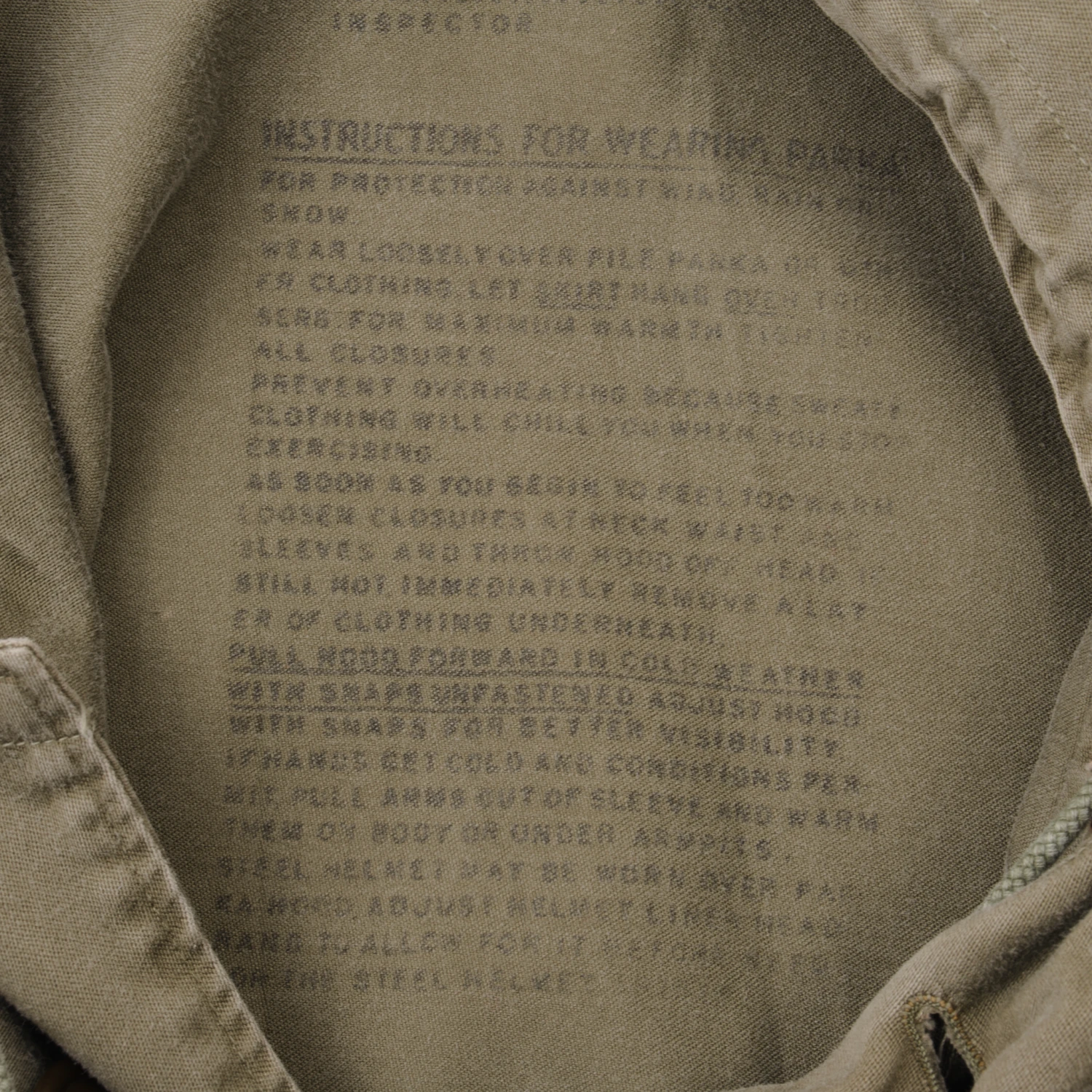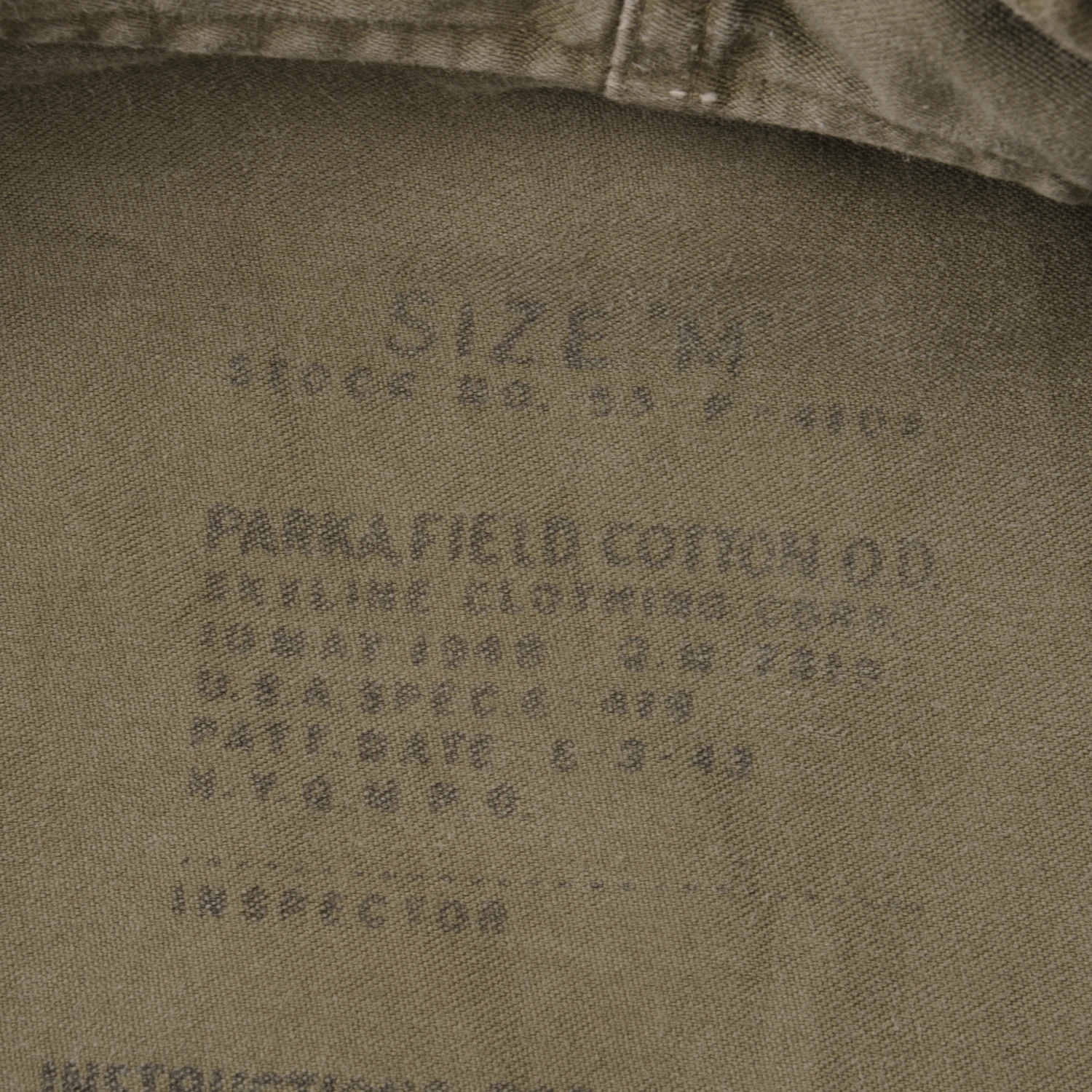 Vintage Us Army Pullover Parka Field Cotton 1948 Size Medium was made of cotton fabric, had slash side pockets, adjustable cuffs and a hood with an integral peak.