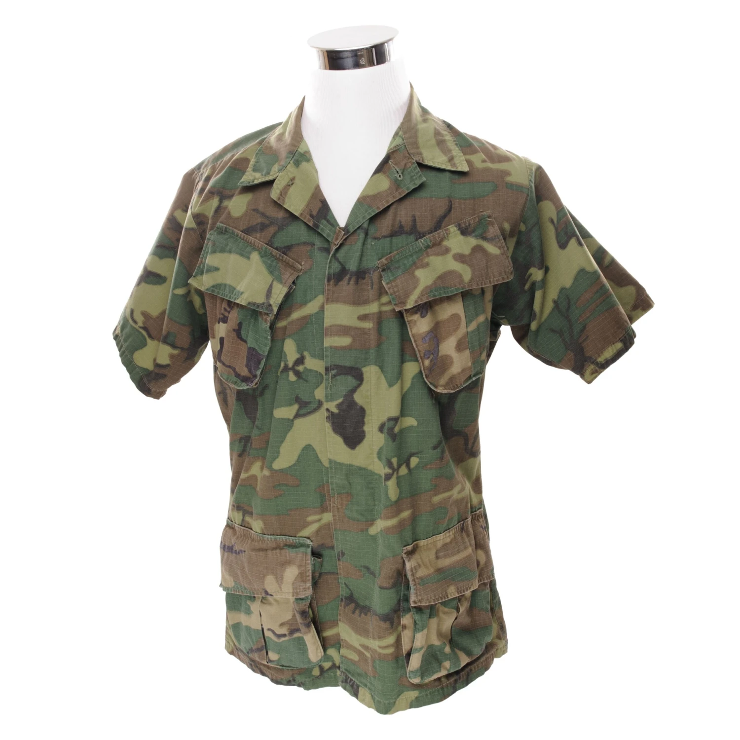 Vintage Us Army Tropical Combat Camo Short Sleeve Jacket 5Th Pat 1970 Vietnam War Small Reg