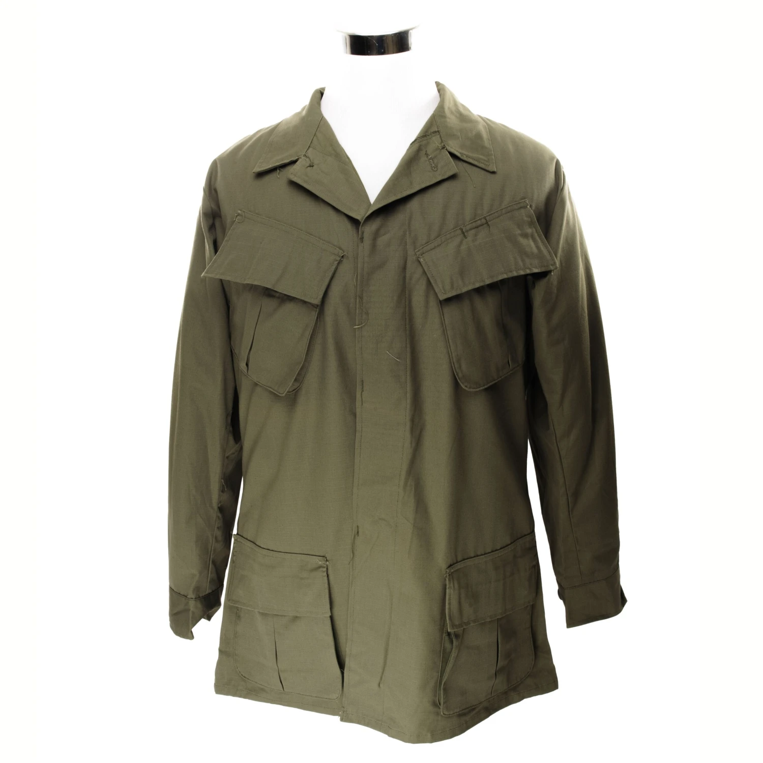 Vintage US Army Tropical Combat Slant Pocket Jacket 5th Pattern Rip-Stop Poplin 1970 Vietnam War Size Medium Long Deadstock NOS (New Old Stock).