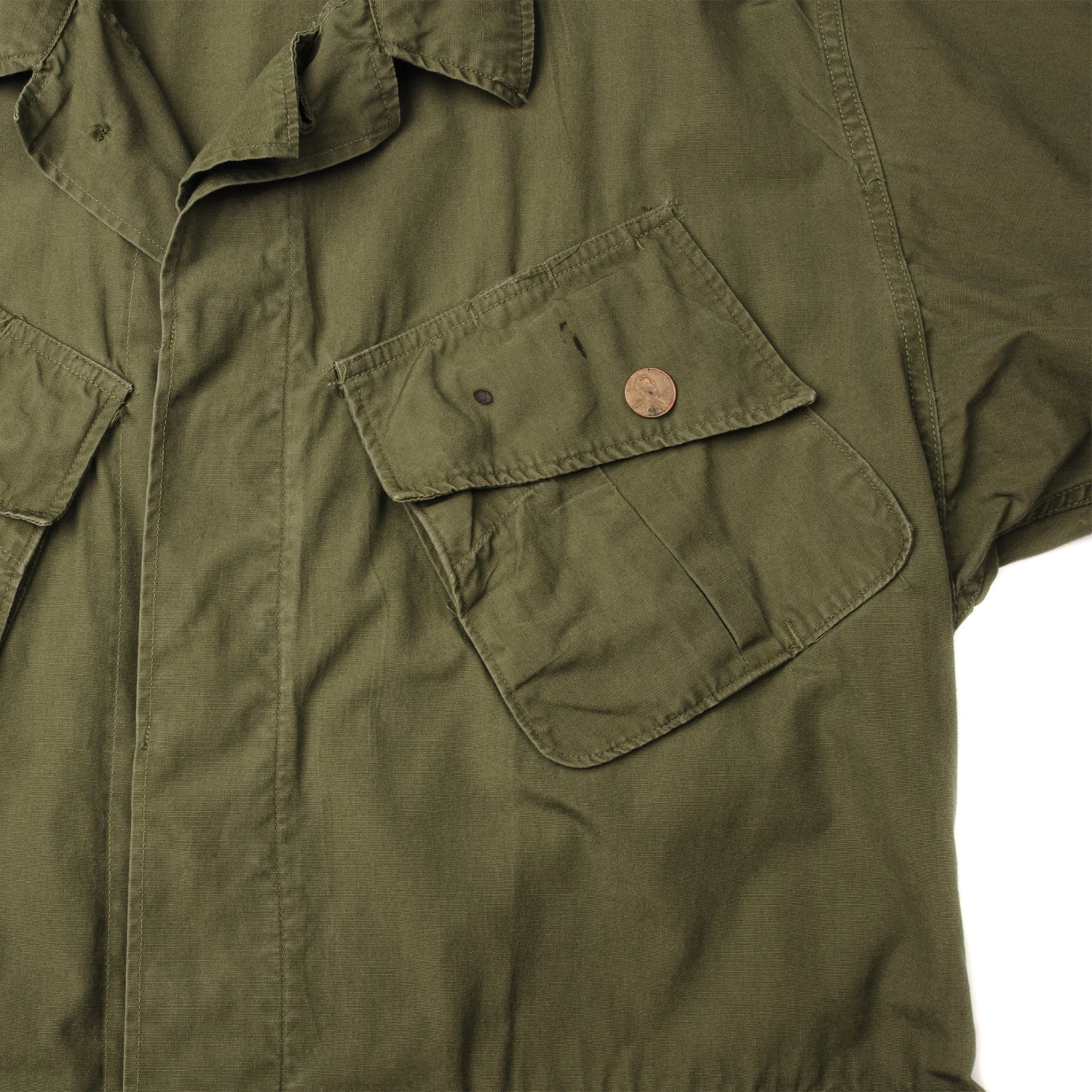 The 3rd major version of the Tropical Combat Coat was first produced in 1966 and had no gas flap, epaulets, waist tabs or pocket drain holes. It was the first jungle jacket to have a back yoke and was made in both OG-107 and ERD camouflage. Like all prior models it was made from wind-resistant cotton poplin and had pen pockets behind both chest cargo pockets.