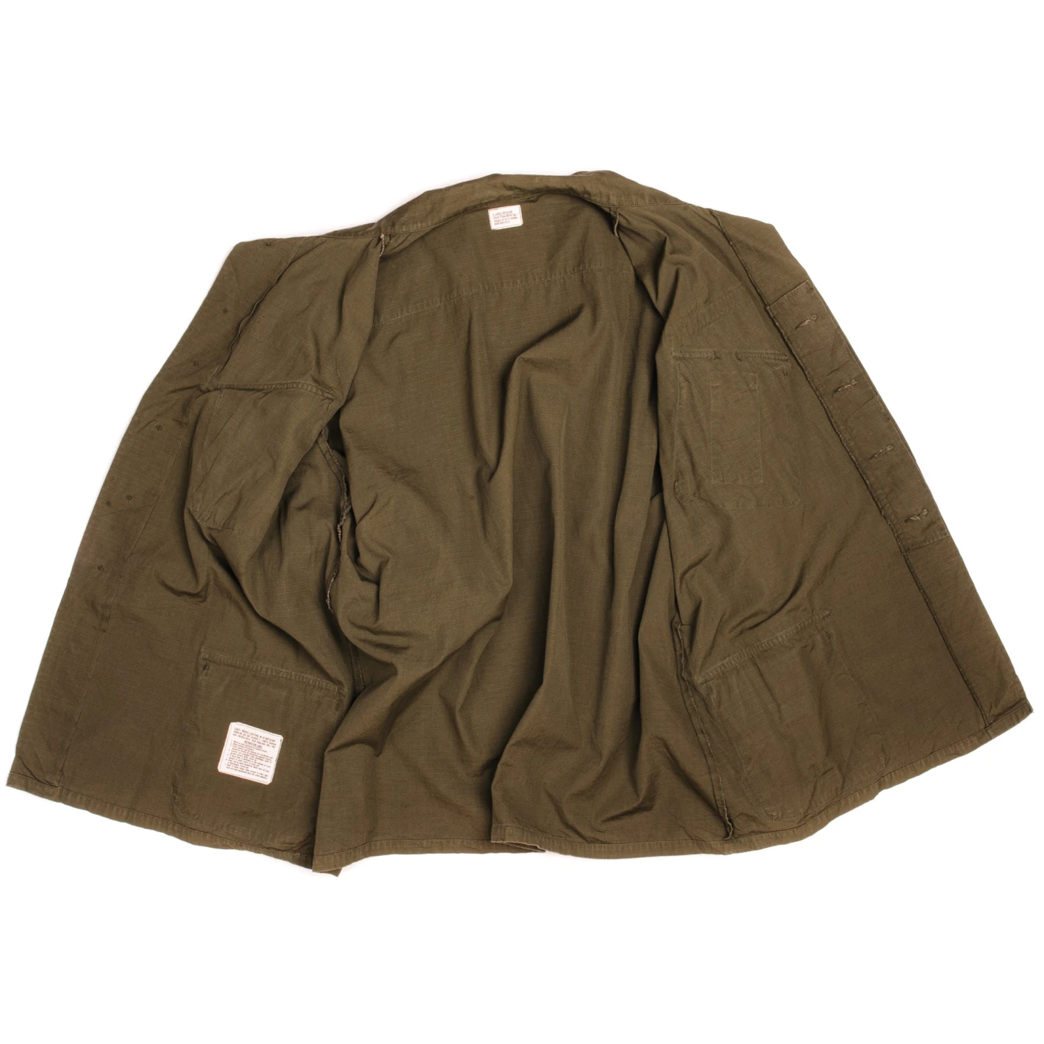 The 5th version of the Tropical Combat Coat did away with the sleeve gussets that had been a feature of all prior models. Like the 4th pattern jungle jacket it had only one pen pocket, was made from rip-stop cotton poplin and was produced in both OG-107 and ERDL camouflage.