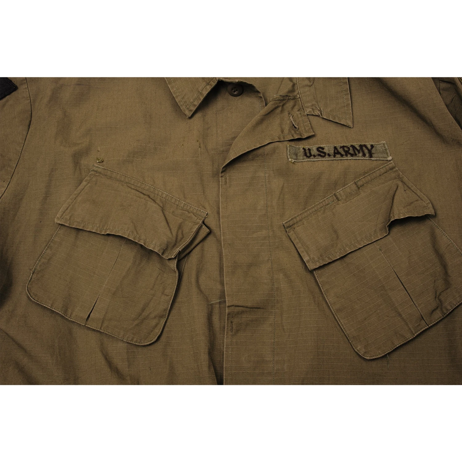 Vintage US Army Tropical Combat Jacket Rip-Stop Poplin 5th Pattern 1969 Vietnam War Size XLarge Regular with patches.