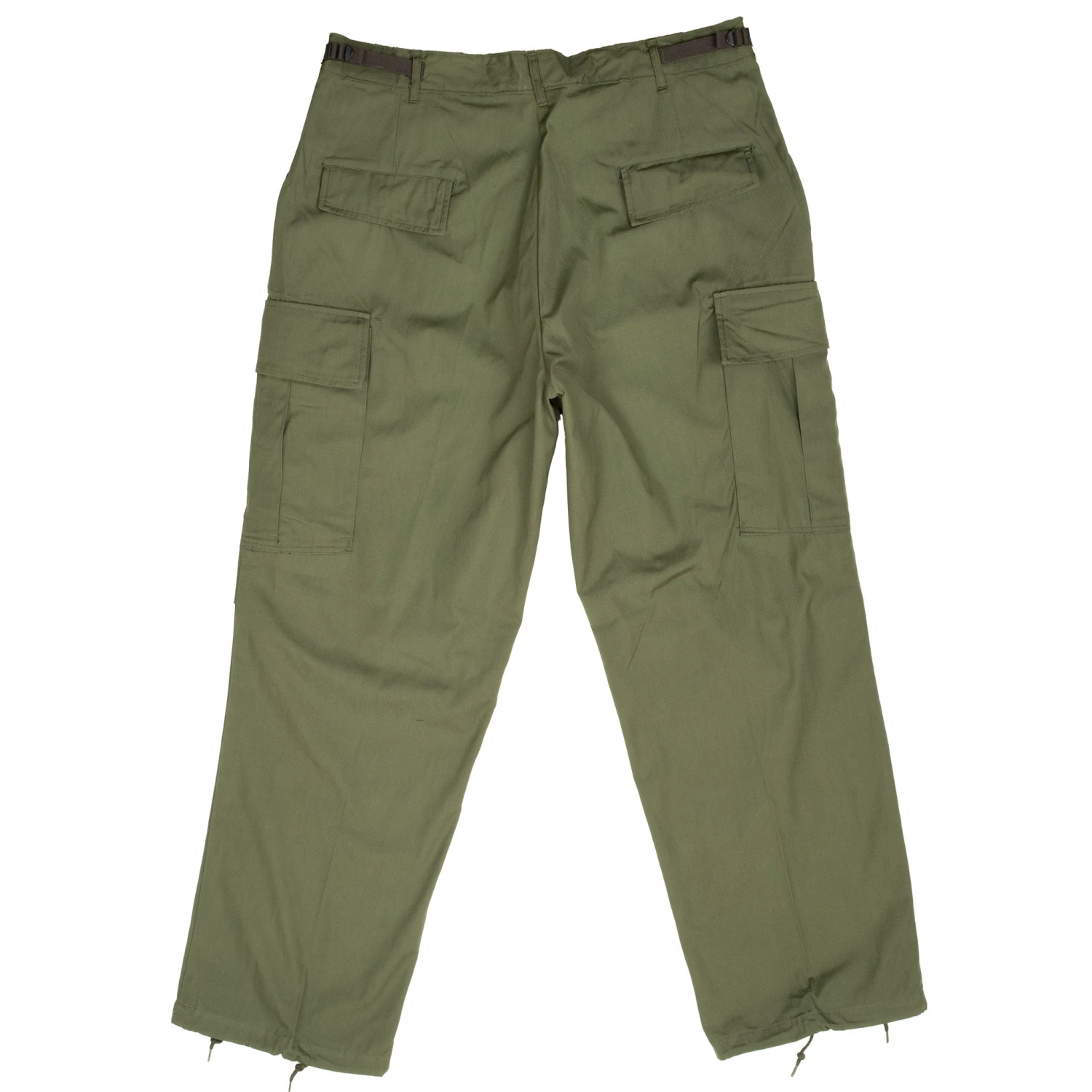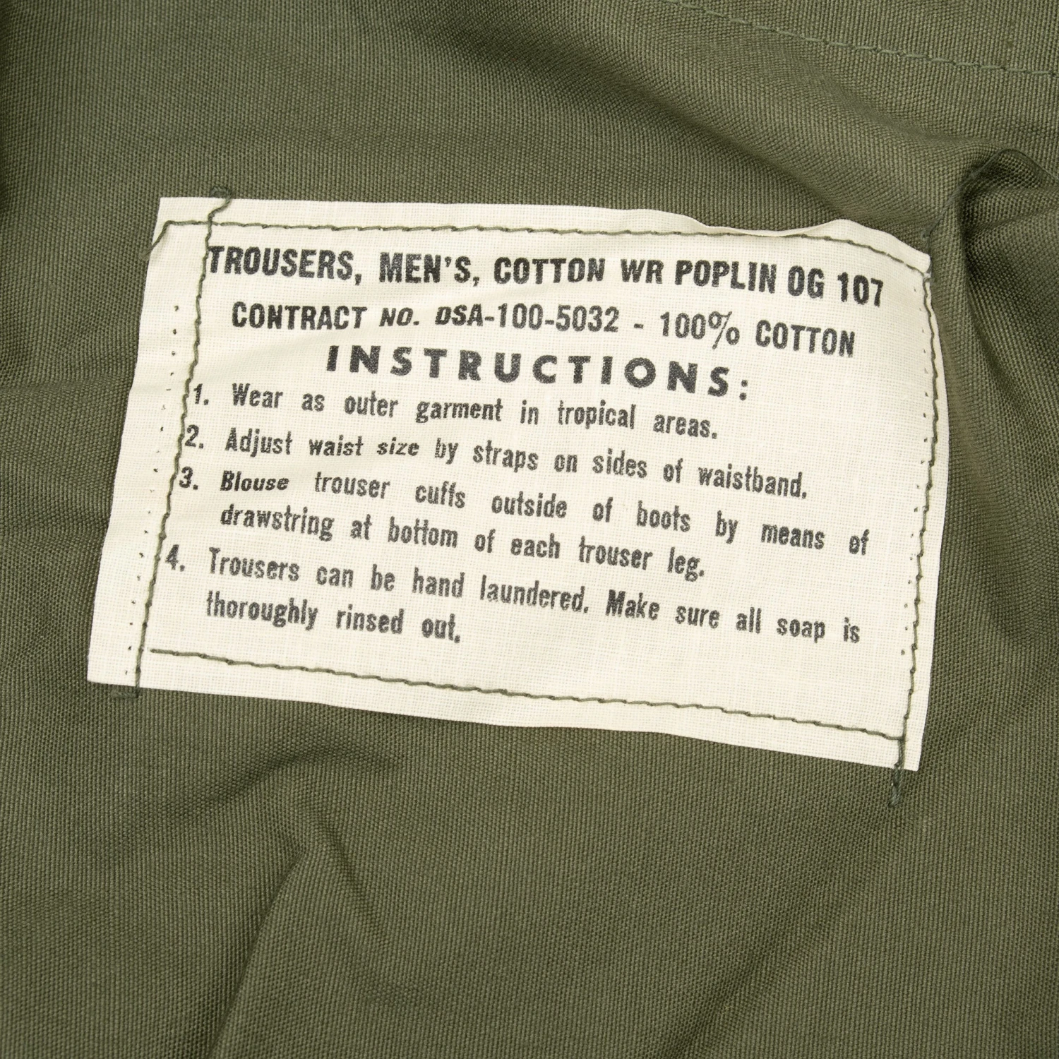 Vintage US Army Tropical Combat Trousers Pants 4Th Pattern Poplin With Wind Resistant Cotton Poplin 1966 Vietnam War Size Large Short Waist size 37 adjustable and Length size from Crotch to Botton Hem 30in Deadstock Nos (New Old Stock)