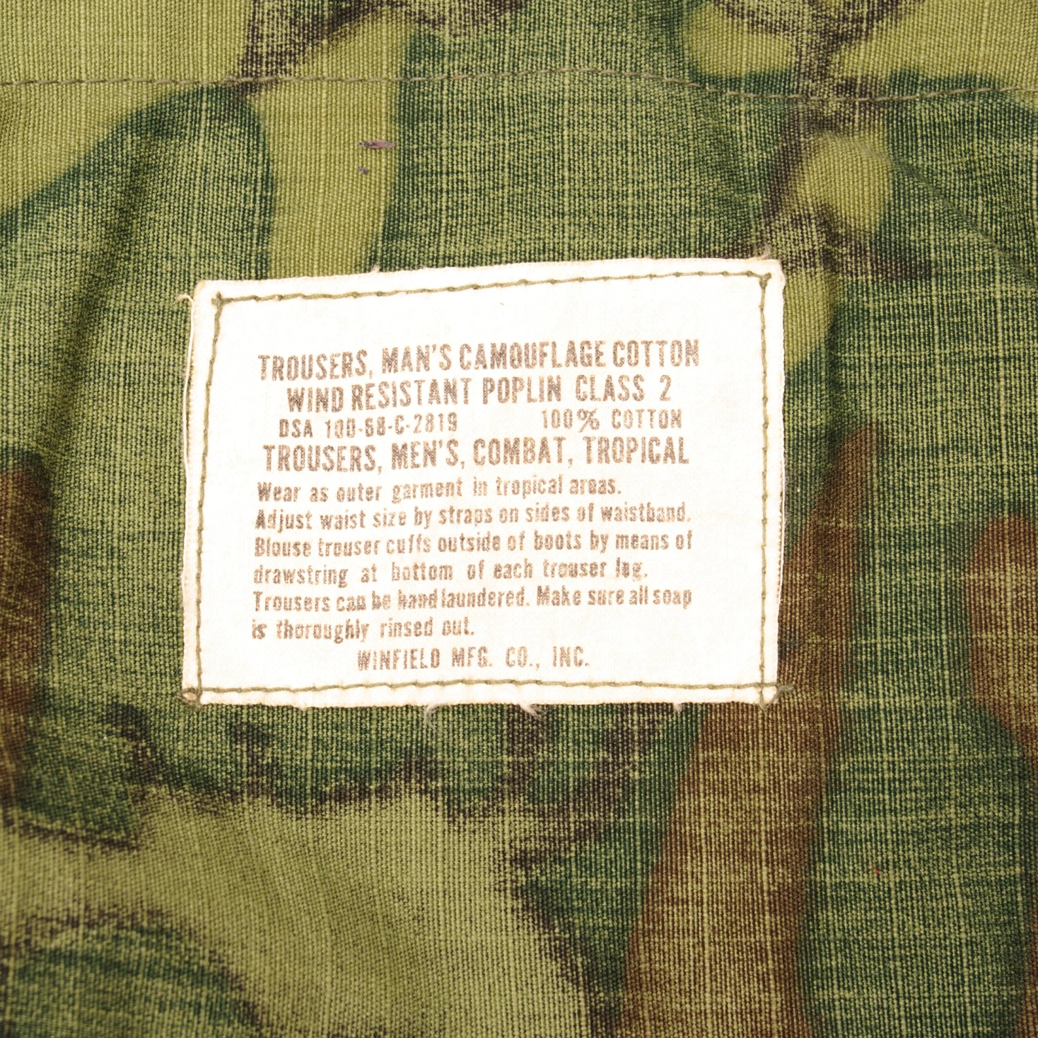 Vintage US Army Tropical Combat Trousers 6th Pattern ERDL Rip Stop Poplin Pants 1968 Vietnam War Size Large Regular W35 L29.