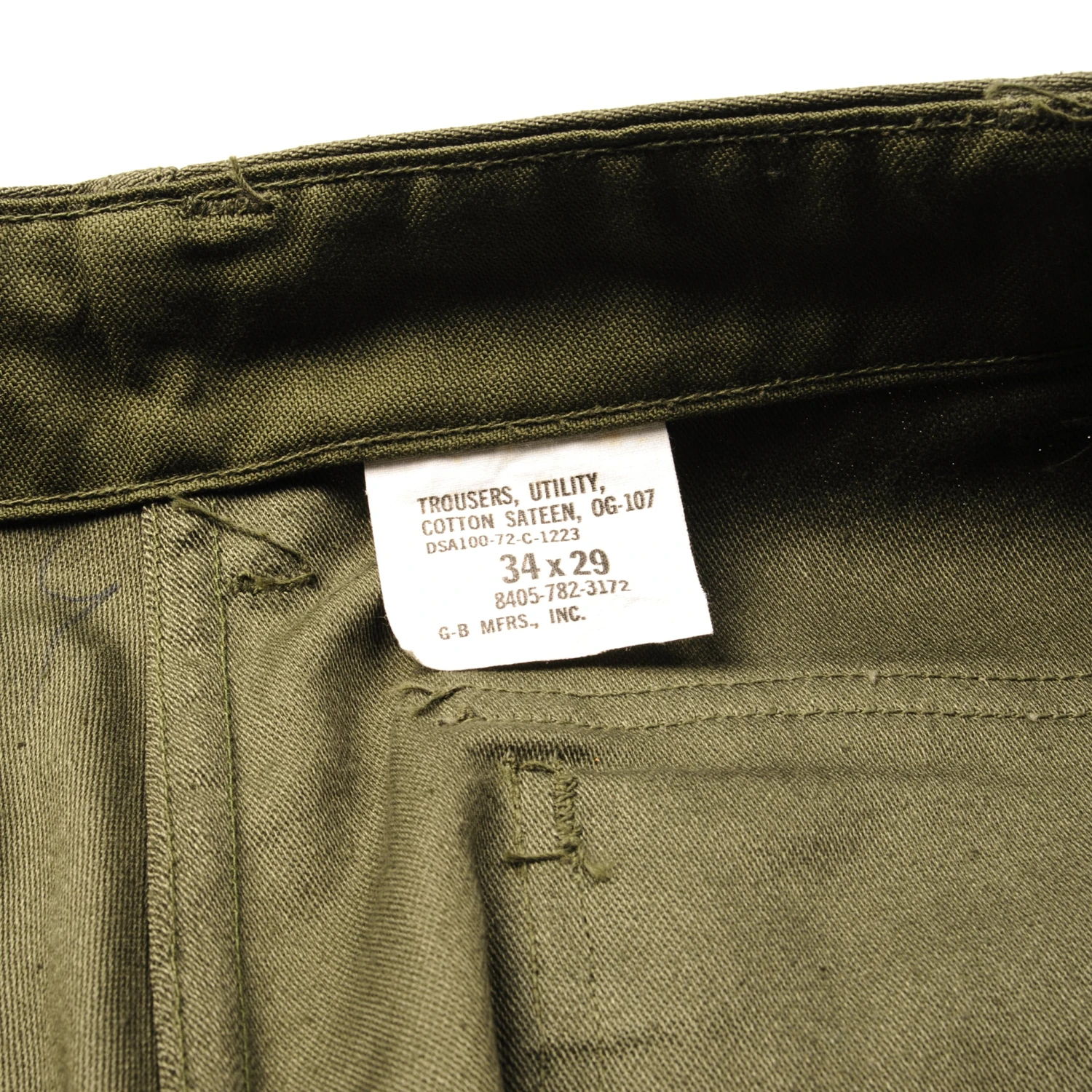 VINTAGE US ARMY UTILITY OG-107 SATEEN TROUSERS PANTS 1972 VIETNAM WAR SIZE W32 L29(Vintage Us Army Utility Trousers Pants 1972 Vietnam War Size W32 L29)