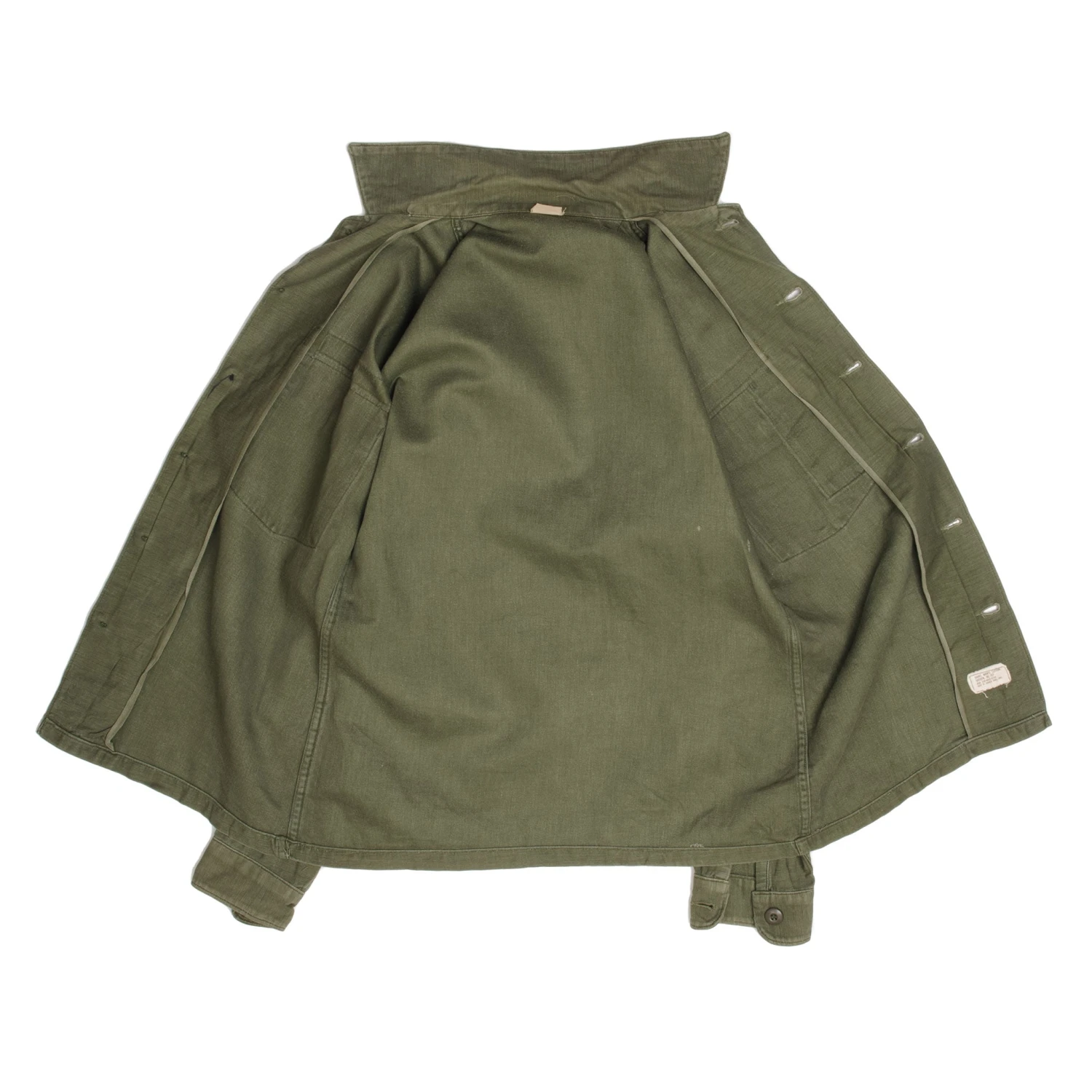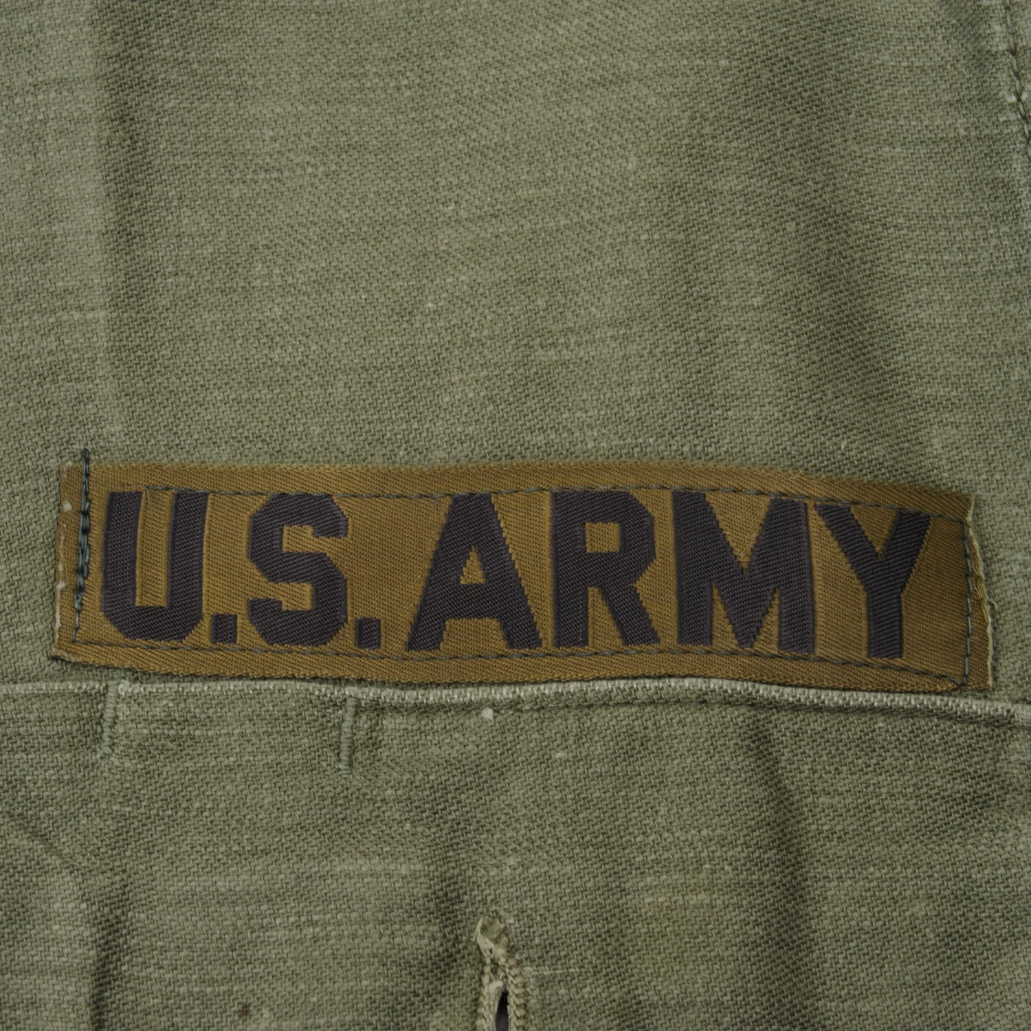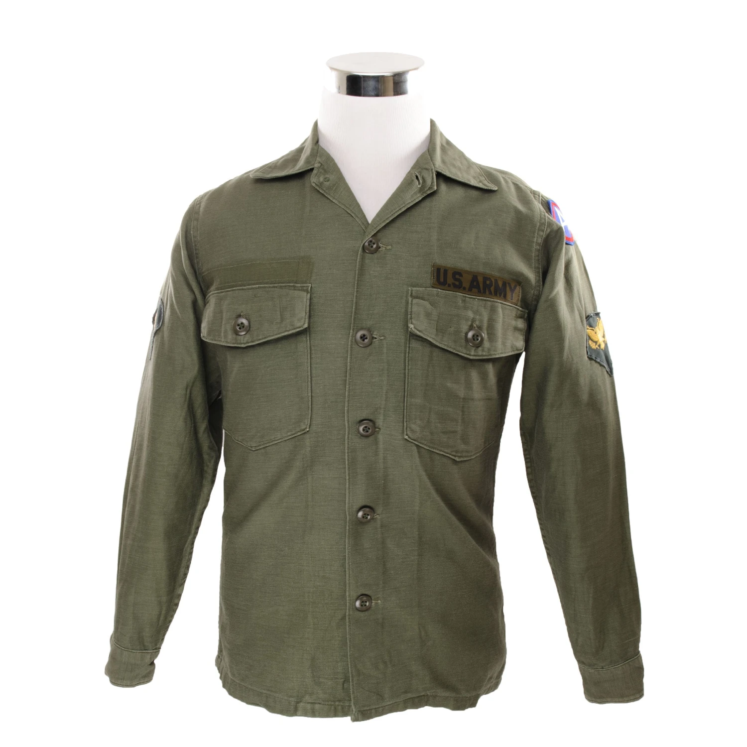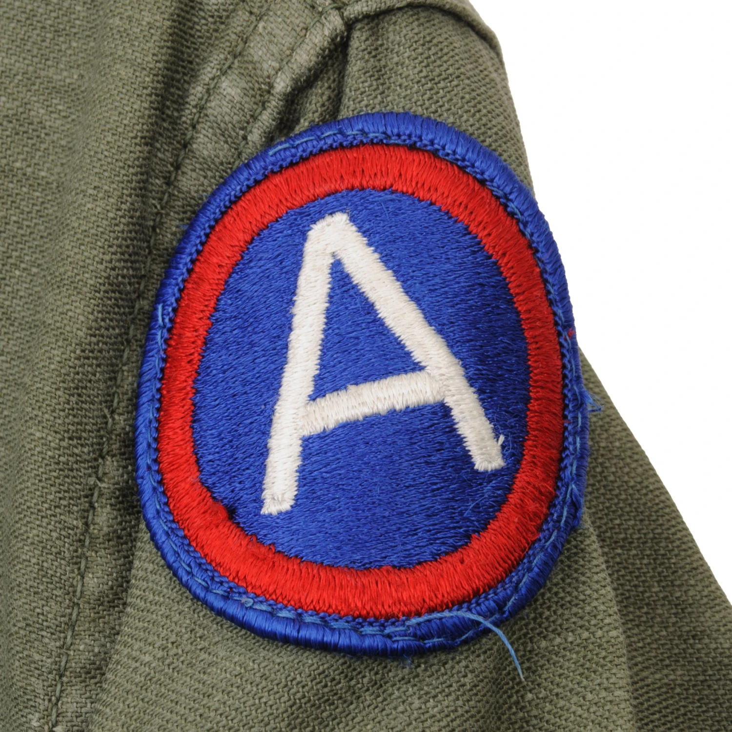 The 1964 design of the Utility Shirt featured V-cut pocket flaps, cuffed sleeves and domed plastic summarys. Like its predecessor, it was made from olive green (OG-107) 8.8oz cotton sateen.