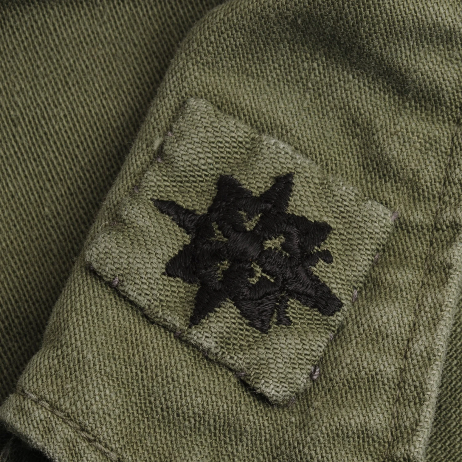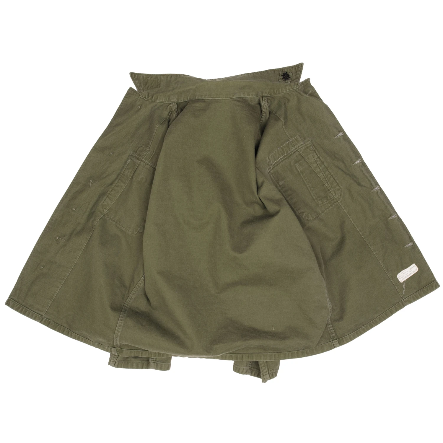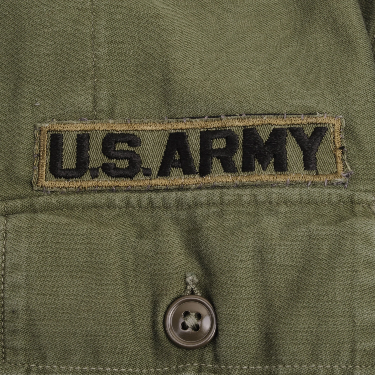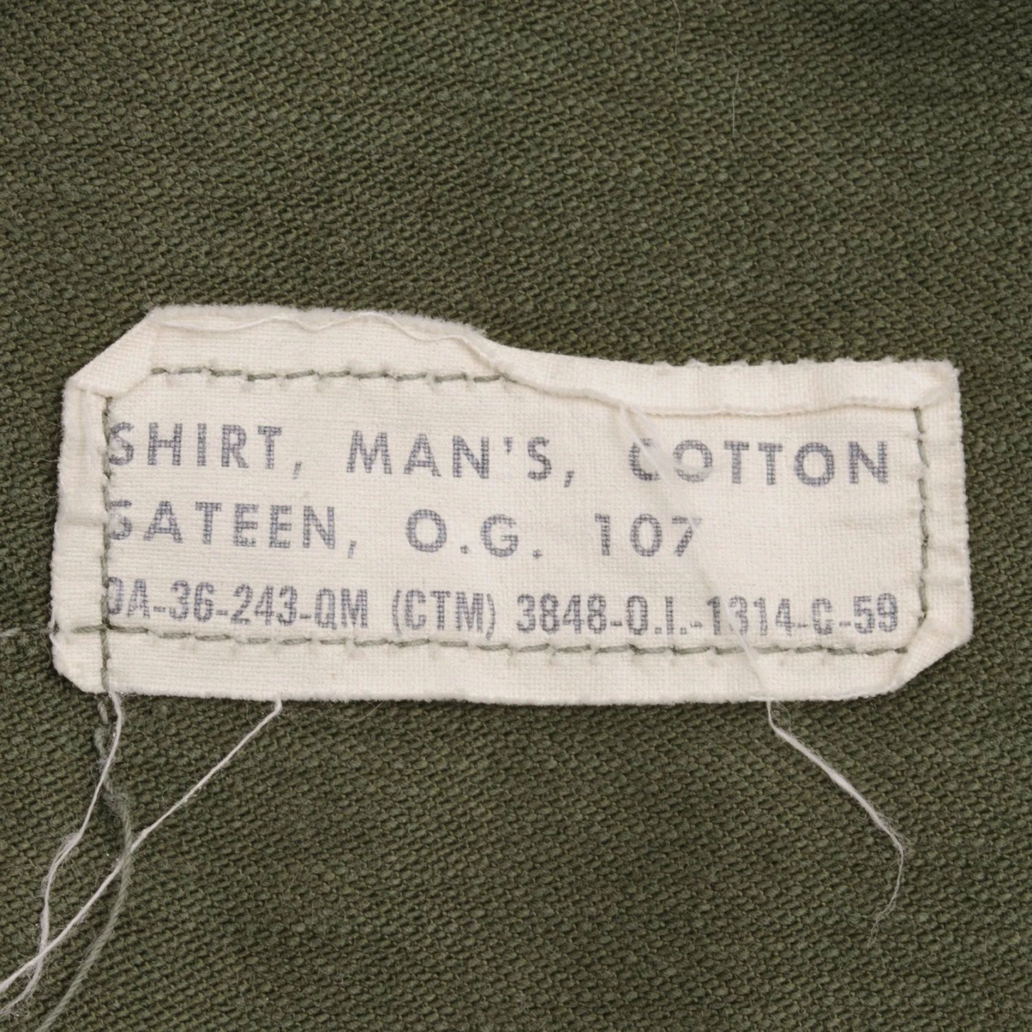The Army’s first pattern utility shirt was standardized in 1958 and replaced the near identical utility jacket. It was made from olive green (OG-107) 8.5oz cotton sateen and boasted two patch pockets with straight cut flaps. The shirt also had an unusually low first summary and no summary cuffs.