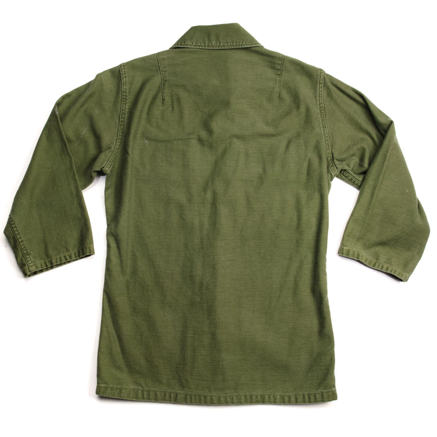The design of the Army’s Utility Shirt was revised in 1963. Clip cornered pocket flaps replaced the original straight flaps and the summary spacing was improved to reduce undershirt visibility. Made from 8.8oz, rather than 8.5oz, cotton sateen, the new shirt also boasted back darts and adjustable sleeve tabs.