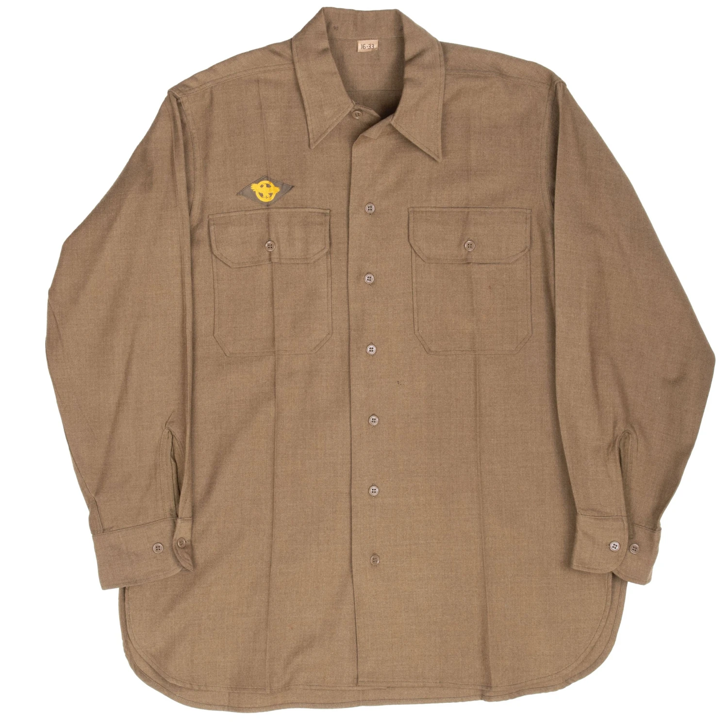VINTAGE US ARMY WOOL SHIRT POST WW2 PATCHED SHIRT SIZE 16X33(Vintage Us Army Wool Shirt Post Ww2 Patched Shirt Size 16×33)