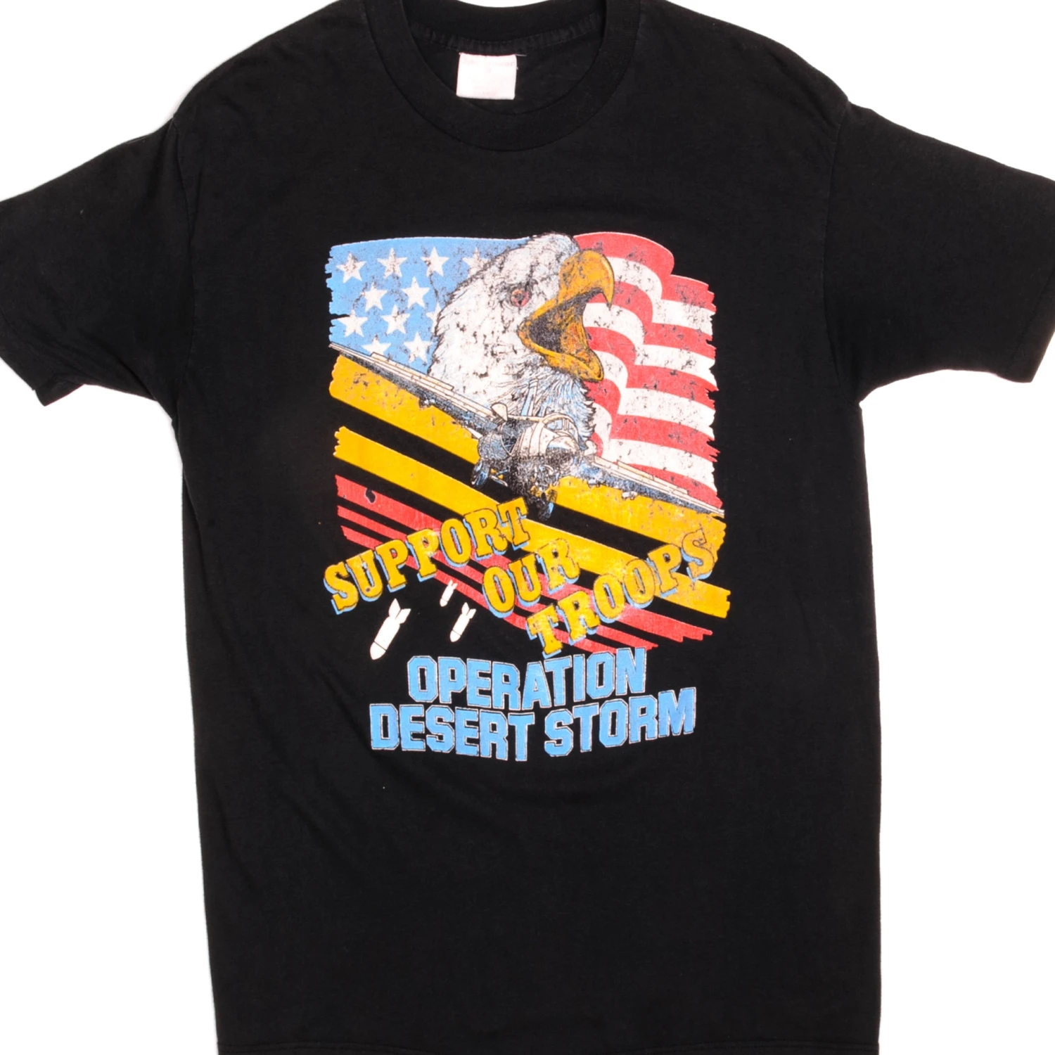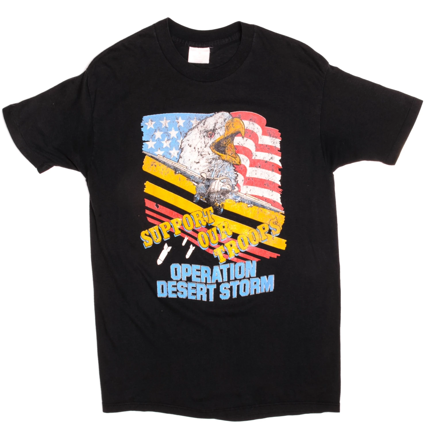 Vintage US Military Support Our Troops Operation Desert Storm Sportswear II Tee Shirt 1990’s Size Medium Made In USA With Single Stitch Sleeves.
