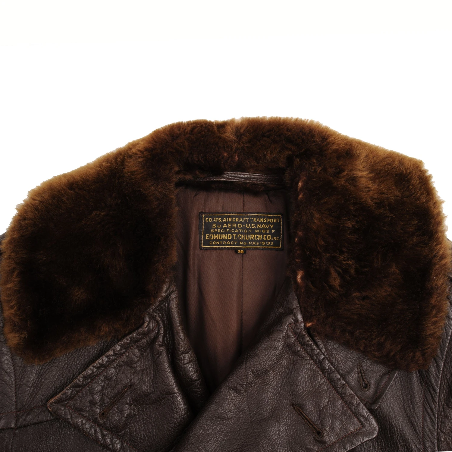 Vintage Us Navy M-69F Leather Transport Aircraft Coat 1940S WW2 Size 38 USN Stencil