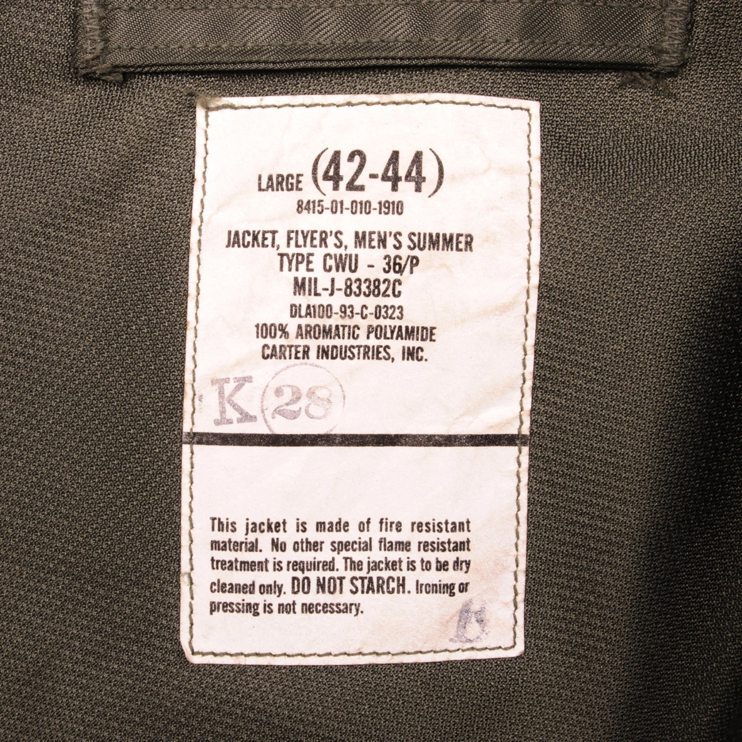 Vintage US Air Force CWU 36/P 36P Summer Flight Jacket 1993 Size Large With Warrant Officer Insignias. Like New Condition