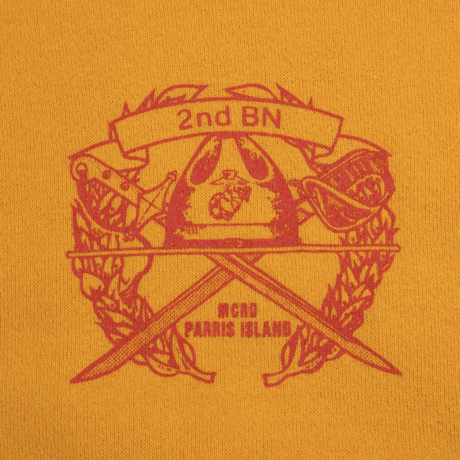 VINTAGE USMC 2ND BN PARRIS ISLAND YELLOW SWEATSHIRT HOODIE 1990S SIZE LARGE(Vintage Usmc 2nd Bn Parris Island Yellow Sweatshirt Hoodie 1990s Size Large)