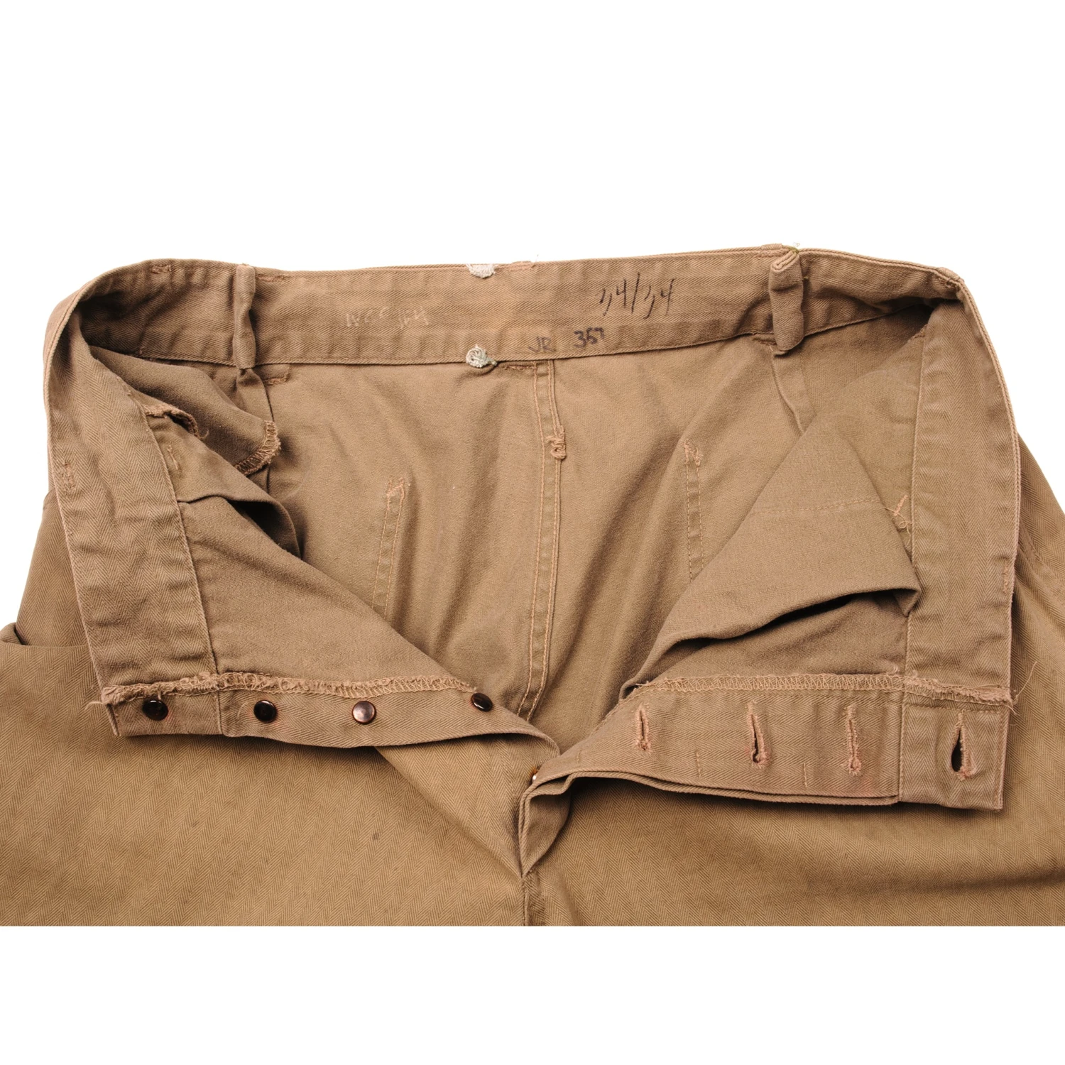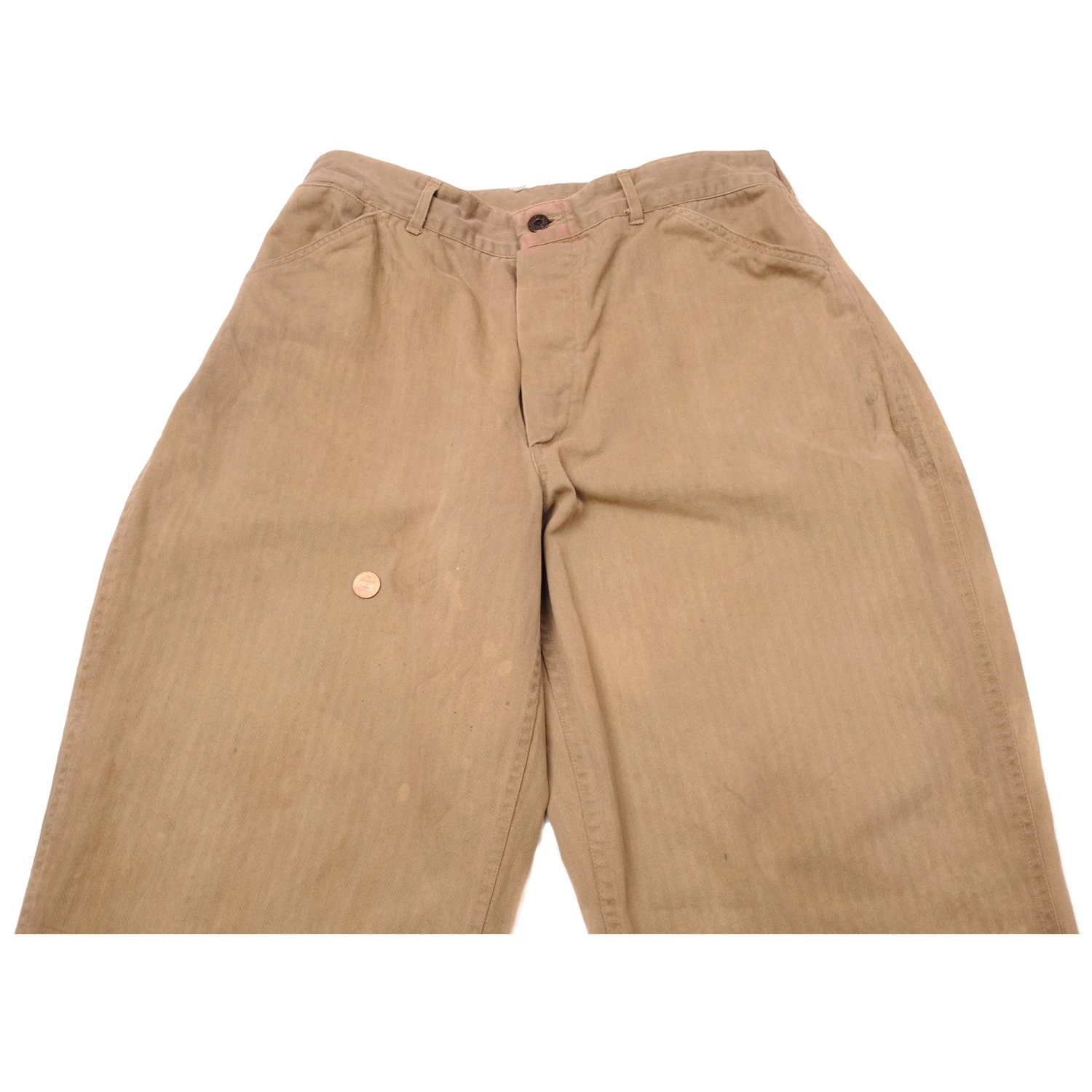 Vintage US Marine Corps M1941 Herringbone Twill Utility Trousers Khaki Pants 1St Pattern World War 2 Era Size 32X33.
