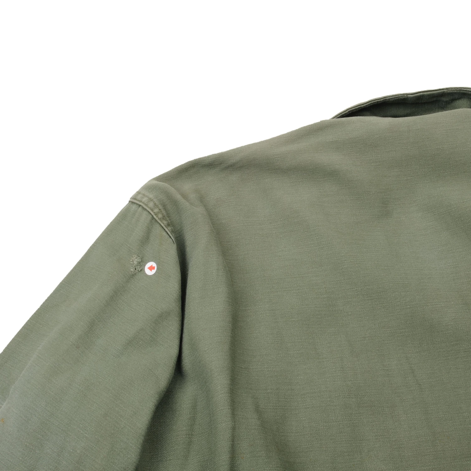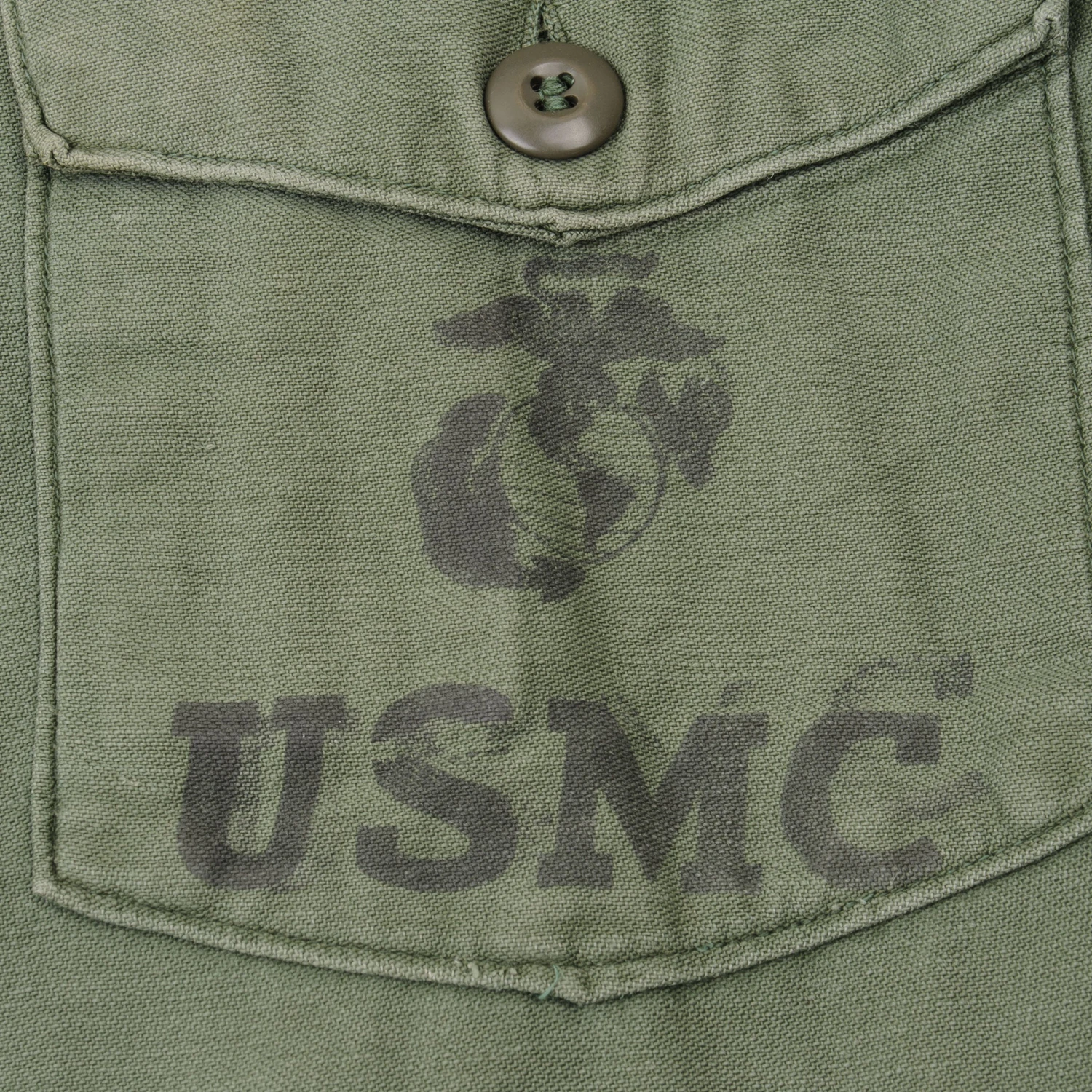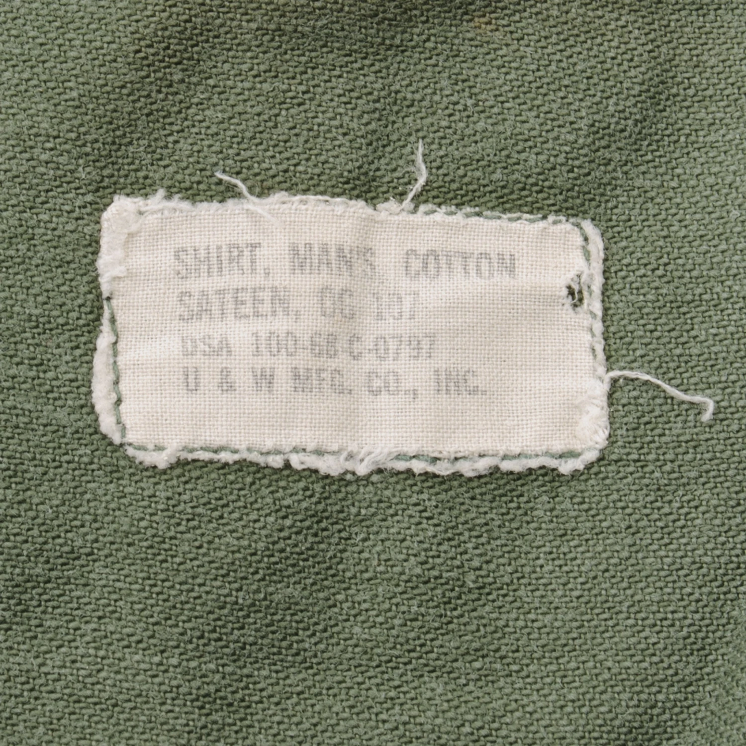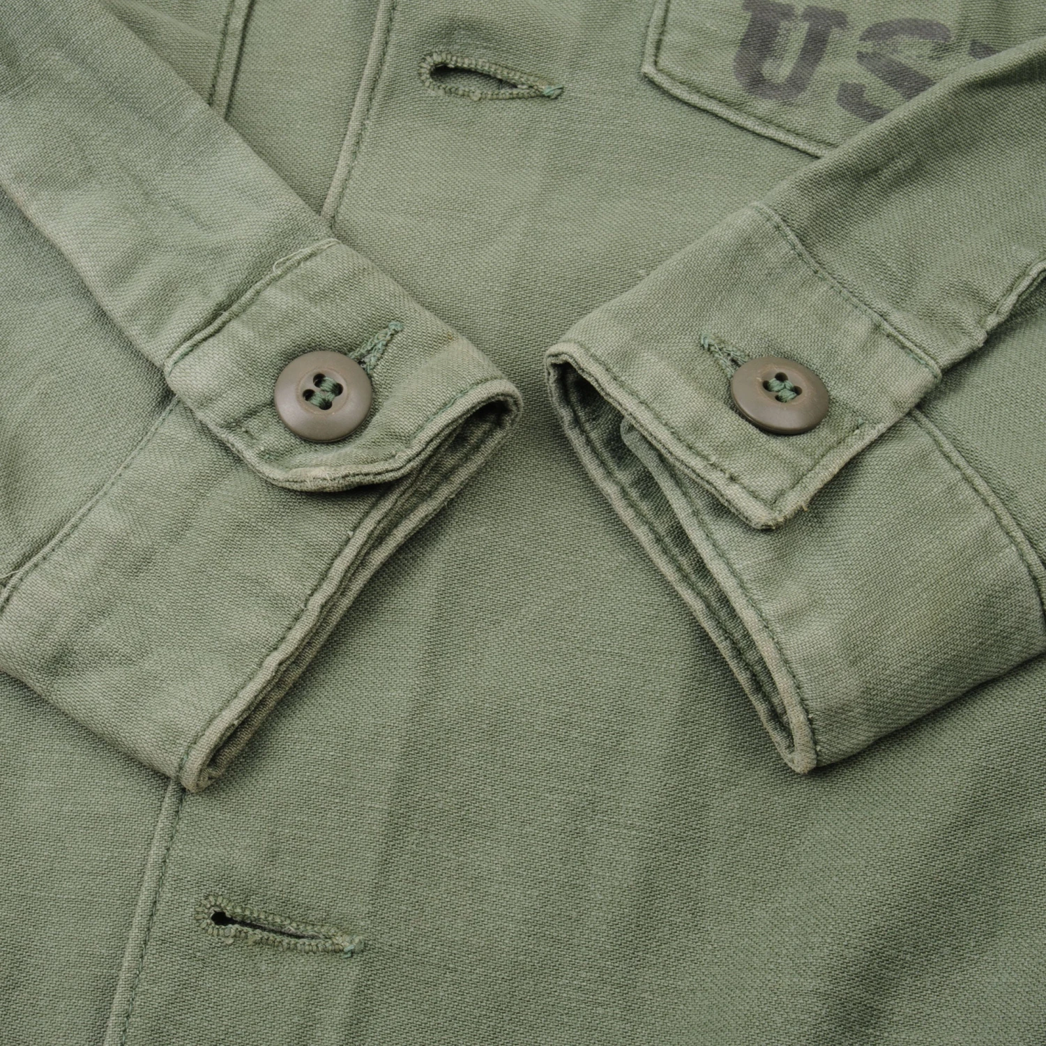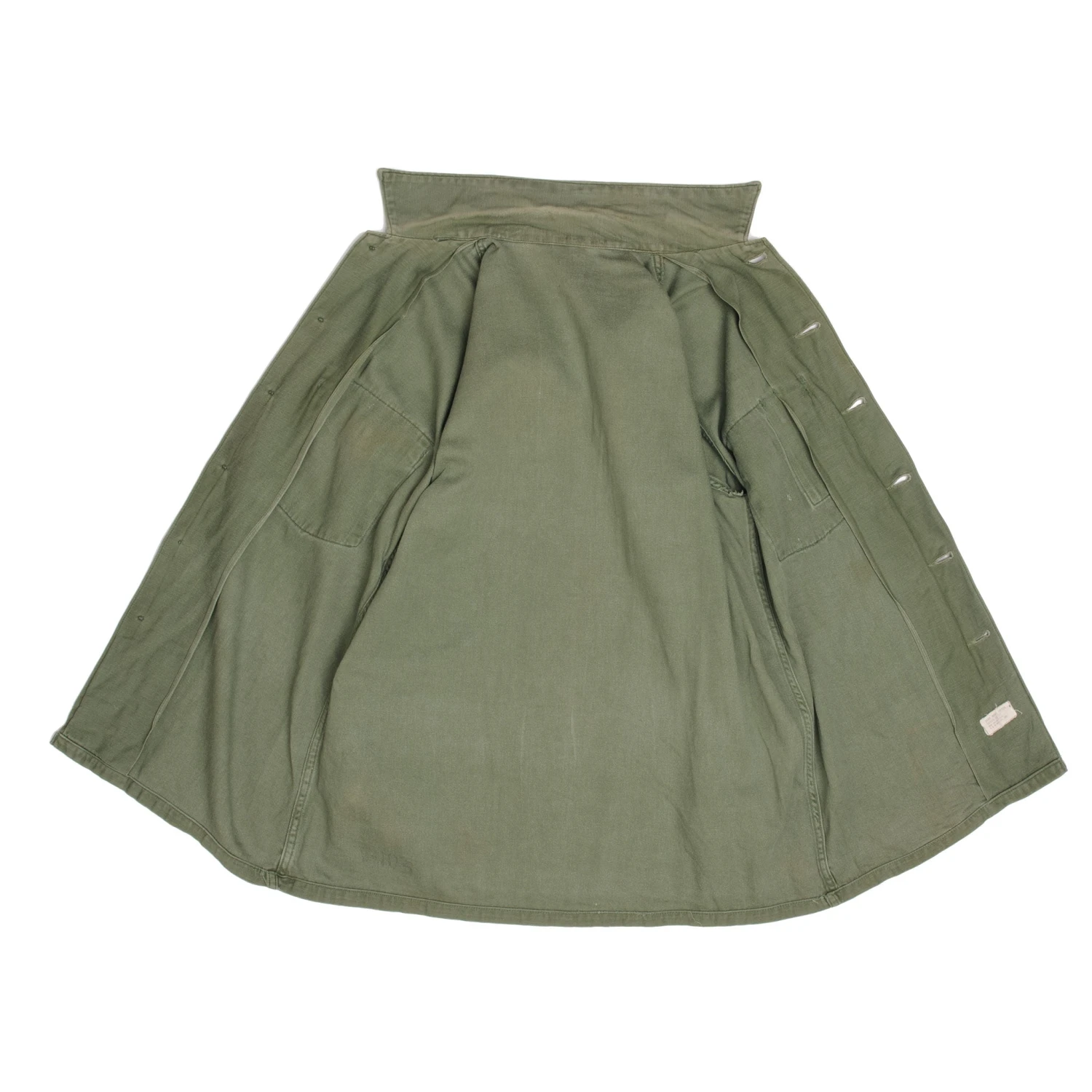 The 1964 design of the Utility Shirt featured V-cut pocket flaps, cuffed sleeves and domed plastic summarys. Like its predecessor, it was made from olive green (OG-107) 8.8oz cotton sateen.