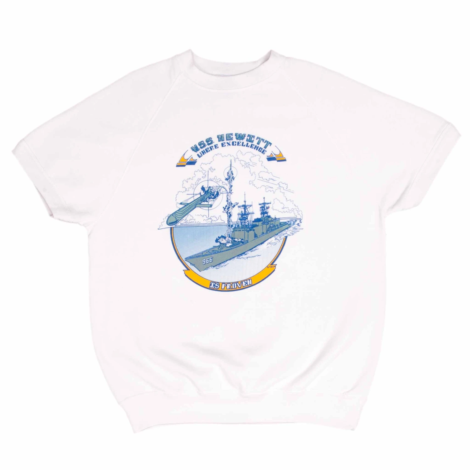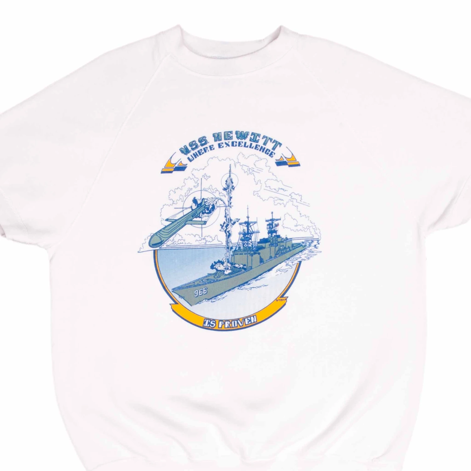 VINTAGE USN NAVY USS HEWITT 966 SHORT SLEEVE SWEATSHIRT 1980S LARGE MADE IN USA(Vintage Usn Navy Uss Hewitt 966 Short Sleeve Sweatshirt 1980s Large Made In Usa)